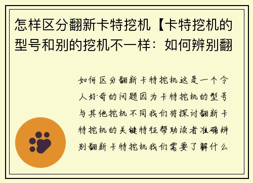 如何区分翻新卡特挖机?这是一个令人好奇的问题,因为卡特挖机的型号与其他挖机不同。我们将探讨翻新卡特挖机的关键特征,帮助读者准确辨别翻新卡特挖机。